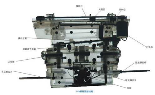 本電梯是根據(jù)最常見的升降式電梯結(jié)構(gòu),采用透明有機材料制成,其結(jié)構(gòu)與實際電梯完全相同,且?guī)缀蹙邆淞藢嶋H電梯的所有功能。為了便于教學,電梯大部分部件均是采用透明有機材料制成,使得電梯的內(nèi)部結(jié)構(gòu)一目了然;同時,電梯的運行過程,以及每個動作都十分明了,且可以反復實際動手操作。使學生能夠很直觀、透徹地了解、掌握電梯的結(jié)構(gòu)及其動作原理,達到事半功倍的效果。解決了以往電梯教學中單純的理論教學方式或是參觀實際電梯時所帶來的不安全,無法全面了解其內(nèi)部結(jié)構(gòu)及運行過程等種種實際問題。